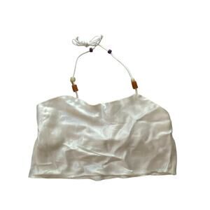 Super cute silky satin crop top in white. Perfect for a day or night out. Brand-new with tags and in excellent condition. Size S.