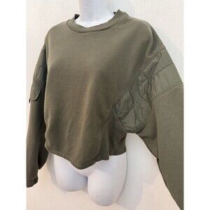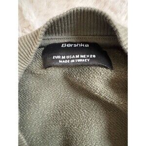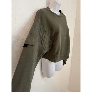 Bershka Sweatshirt Pullover Cropped Crewneck Size M Olive Green Fall Oversized