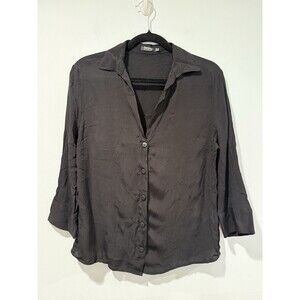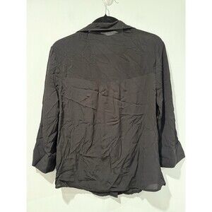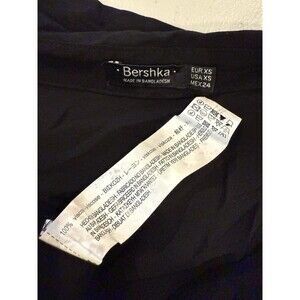 Bershka Top Womens XS Black Button Up Lightweight Long Sleeve Travel Resort