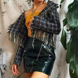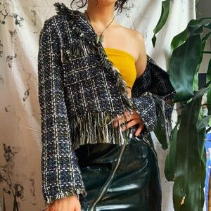 Bershka Tweed Jacket With Frayed Hem. Pre-Owned.
