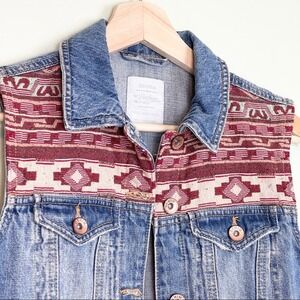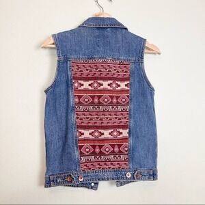 Bershka Vintage Inspired Jean Denim Vest Aztec Panels woman's size XS