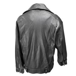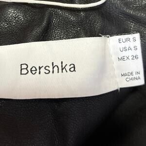 Bershka Women's Black Vegan Faux Leather Zip Up Notch Collar Moto Coat Jacket S