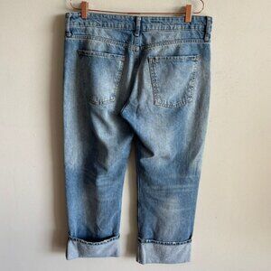 Bershka Womens Boyfriend Style Wide Cuffed Jeans Acid Light Blue Size 8