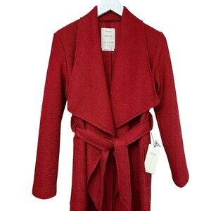 Bershka Womens Coat Size Small Red Wool Blend Waterfall Collar NWT