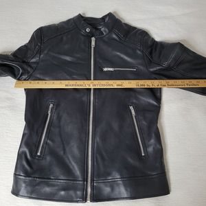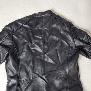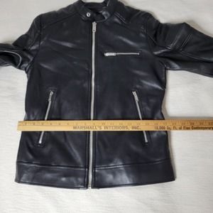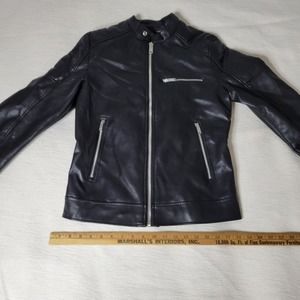 Bershka Womens Leather Jacket Mob Wife Full Zip Black Sz Small Good Condition