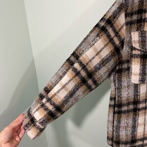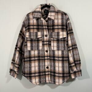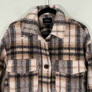 Bershka Women's Neutral Colors Plaid Button Up Oversized Shacket Size M-L