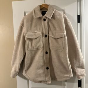 Bershka cream button-up shirt jacket.