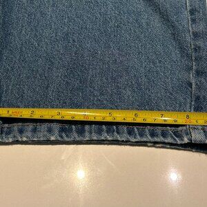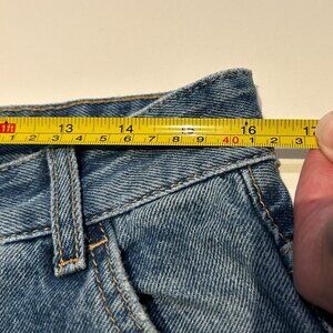 The last four photos provide the requested measurements for these jeans: waist measures about 32" (16" side to side); rise is 14"; inseam is 29" and the ankles are 9" across at the bottom. I hope this helps.