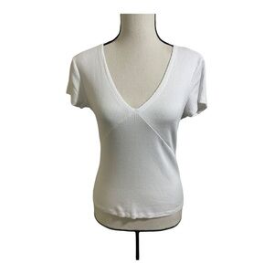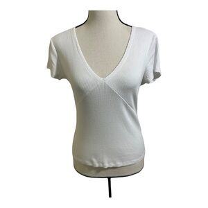 Bershka womens V-neck ribbed short sleeve top. Size Large white.