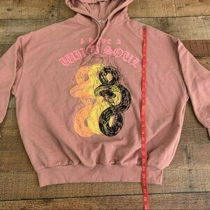 Bershka womens pink hooded sweatshirt pullover hoodie in pink with a snake - S