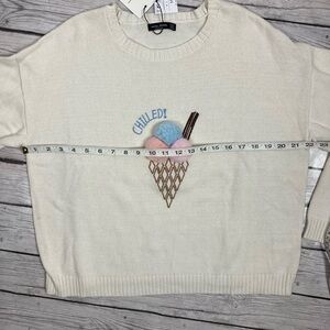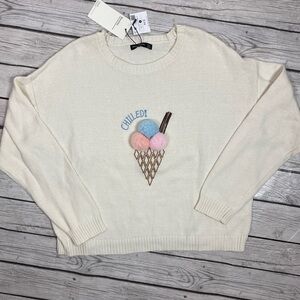 Cute cream colored sweater embellished with an Ice Cream Cone.