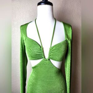 Bershka Cut Out Detail Square Neck Mini Dress Green Womens Size S