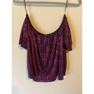 This beautiful off the shoulder blouses the perfect addition to your wardrobe. Item is previously warm, but in great condition. Item would be great with a pair of black slacks or jean pants out on the town.