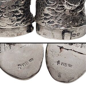 Marked 935 BM on the bottom of each, also marked 935 BM and 925 with London import mark on the bird's neck.