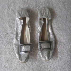 Bertlyn Foldable Travel Silver Flats with Buckle