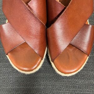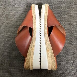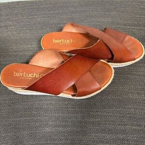 Bertuchi Crossband Wedge Slide Platform Sandal Brown Leather Women Size 38/7.5