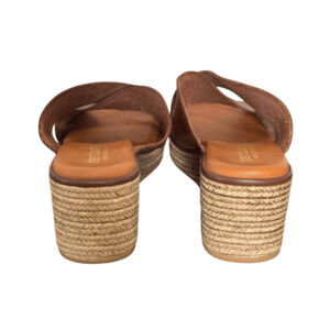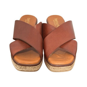 Bertuchi Leather Cross-Band Wedge Espadrille Sandals - Brown - Size 40 (Spain), 8 (US)
