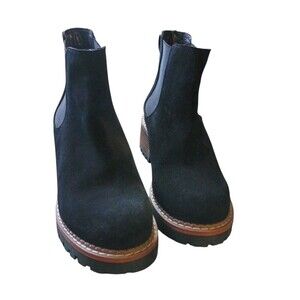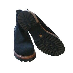 Bertuchi Womens Lug Sole Chelsea Ankle Boots Size 7.5 Black Suede Leather Spain