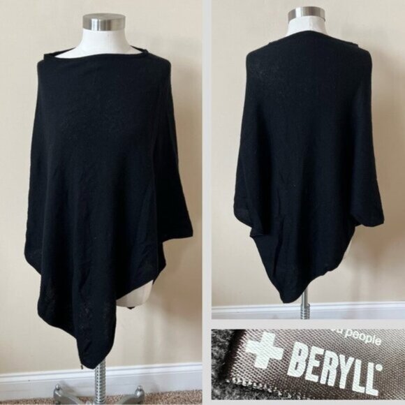 Beryll Black Cashmere Knit Lightweight Poncho Sweater One Size