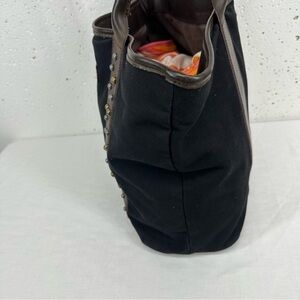 Beryll Black Canvas Leather Studded Tote Bag in good preowned condition. Light signs of wear on body some light fading and there is a stain on the inside lining.