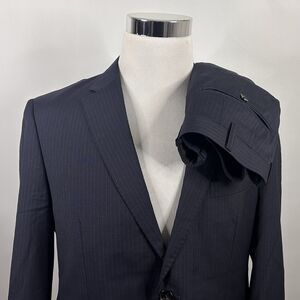 Bespoke 42R Suit 36x29 Pleated Tollegno 1900 Wool Navy Pinstriped Two Button