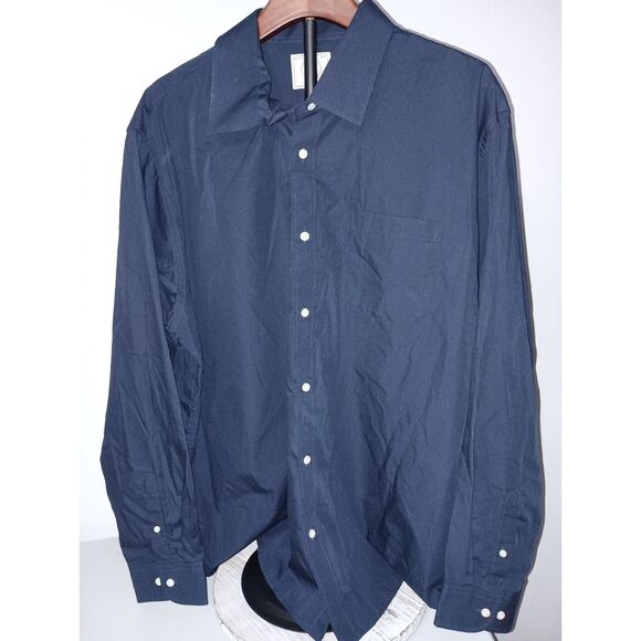 Bespoke: Navy/Black Long-Sleeve Button Down Classic Fit Shirt, Men's Size XXL