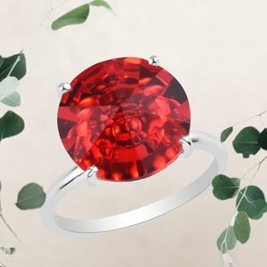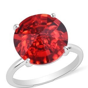 Bespoke Flower Cut Light Siam Crystal Solitaire Ring in Sterling Silver (Size 9.0)