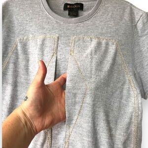 Be.Spoke Unique light Grey Cotton Blend Casual unisex Streetwear T Shirt w/ Abstract Contrasting Statement Front Panels