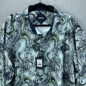 Bespoke Moda Shirt Mens 3XL Black White Button Up Metallic Animal Print Floral