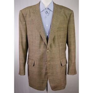 Bespoke Tailored Full Canvas Blazer Wool Cashmere Loro Piana Brown Plaid 46L
