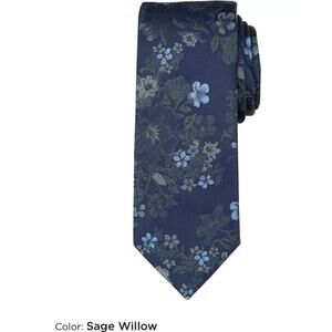 Bespoke Floral Skinny Tie 2.5” Flowers Navy Blue Green Sage Willow