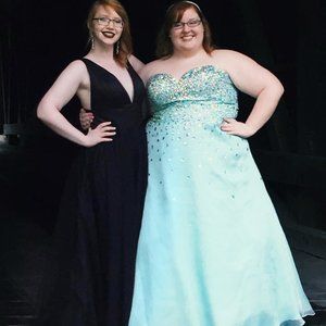 Bess Bridal Black Deep-V Neckline Prom Dress