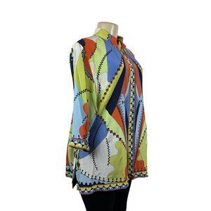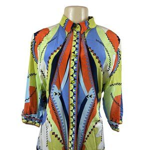 Bessi Womens Multicolor Abstract Pattern Button-Up Blouse Size 18