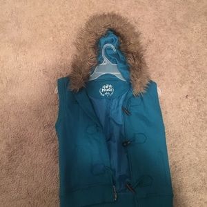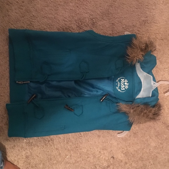 Turquoise jacket with fur never been worn no tears but no tags I was going to wear it one day then it got to small