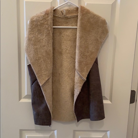 Fur-lined faux leather vest