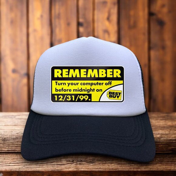 Best Buy Y2K Mens Trucker Hat Remember To Turn Computer Off 12/31/99 Millennium