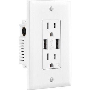 It’s just a power outlet—until you need to charge USB devices. This Best Buy essentials BE-HW36A218 3.6 A USB Charger Wall Outlet replaces a standard duplex outlet to add two USB ports. Not only can you plug in regular 3-prong AC devices, but you can also connect USB cables to charge phones, tablets and other devices without needing an extra power adapter. The outlets are tamper resistant with spring-loaded shutters that close the slots when you remove a plug, keeping your family safe. Installation is a breeze with your choice between push-in or screw terminal connections. Use either the included white wall plate or replace with your own decora-style cover to match your room. Backed by Best Buy, this power outlet is just what you need to simplify charging.