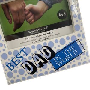Best Dad in the World 4x6 Picture Frame White Blue Dots Wall or Tabletop NIB