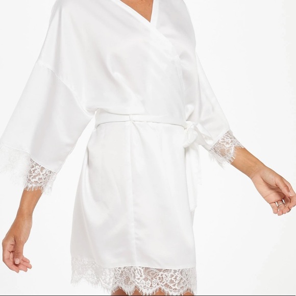 The Best Day Ever robe is made from a beautiful, silk-like satin fabric and trimmed with eyelash lace. The sash is sewn on the back with shirring for an added detail.