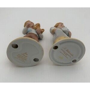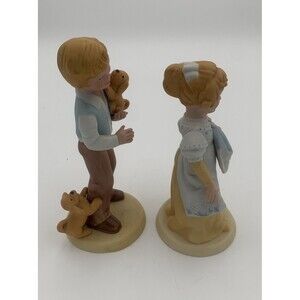 The Avon Porcelain Figurines from 1982 capture the themes of Best Friends and A Mother's Love with a vintage touch. Made of delicate porcelain and featuring a soft blue color, these figurines are perfect for collectors or those looking to add a sentimental touch to their home decor. The figurines depict the special bond between friends and the unwavering love of a mother, making them a unique and cherished addition to any collection.