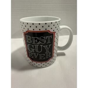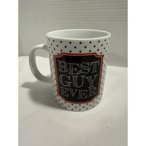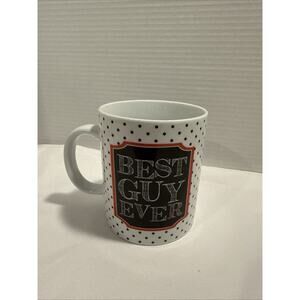 The product is a novelty round ceramic coffee mug with an Art Deco polka dot print featuring the text "BEST GUY EVER" COFFEE MUG/TEA CUP." It has a capacity of 15 fl oz and is microwave and dishwasher safe. The mug is designed for all occasions and the polka dot print makes it a fun addition to your kitchen or as a gift for the special guy or father in your life.