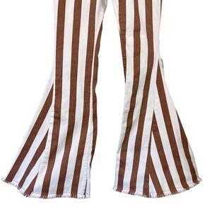 Bestto Show Stopper Full Size Run Striped Flare Leg Jeans in Cream/Rust