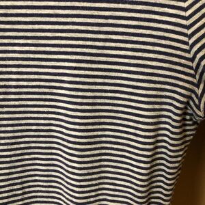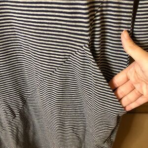 Betabrand 30 Day Striped 3/4 sleeve pocket Dress blue grey Size small. Cinch side. Good condition, some wash wear