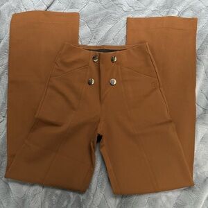 These pants are designed to cover a heel. Featuring four functional pockets and pull-on waistband with non-functional buttons