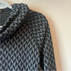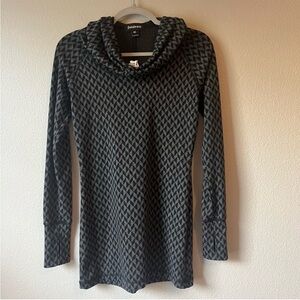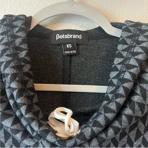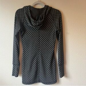 Betabrand Black and Gray Chevron Cowl Neck Long Tunic Hoodie Size XS