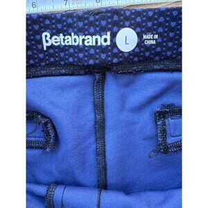 Betabrand Blue Heart Print Heartline Skinny Leg Pull On Yoga Dress Pants Sz L j2
