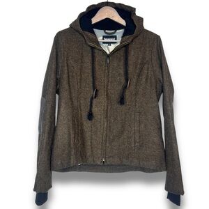 Betabrand Brown Black Academic Wool Blend Herringbone Hooded Zip Jacket Size L