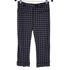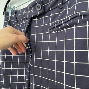 Betabrand Dark Blue Windowpane Zip Up Button Closure Stretch Pants With Pockets