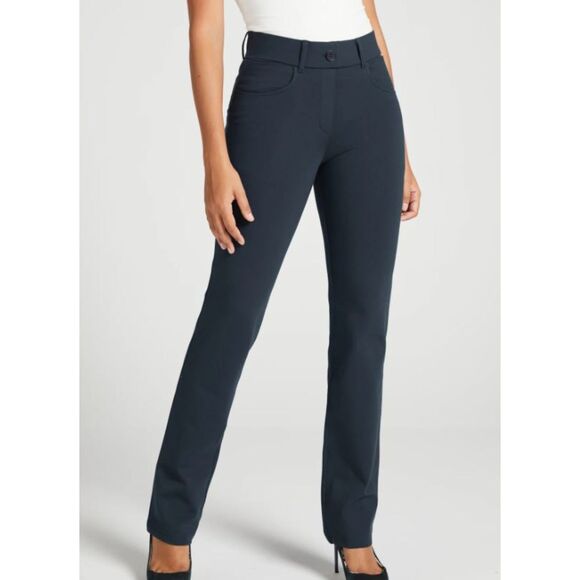 Look polished while staying comfortable in these Betabrand Dress Yoga Pants in a classic navy blue. Designed in their popular bootcut silhouette, these pants blend the tailored look of slacks with the comfort of leggings. The pull-on style offers a smooth waistband and flexible fit, while the stretch blend fabric ensures all-day ease of movement.