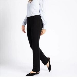 Black Wrinkle-resistant ponte fabric with 4-way stretch. With Faux pockets, non-functional buttons, faux fly, elastic waistband with belt loops. In excellent condition.